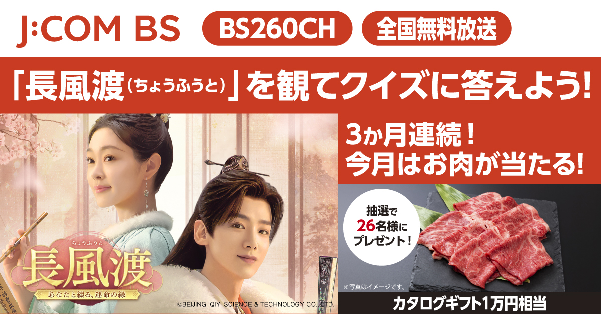 10月1日放送のドラマ「長風渡」を見てクイズに答えると BS260chにちなみ、抽選で26名様にお肉(カタログギフト1万円相当)をプレゼント!